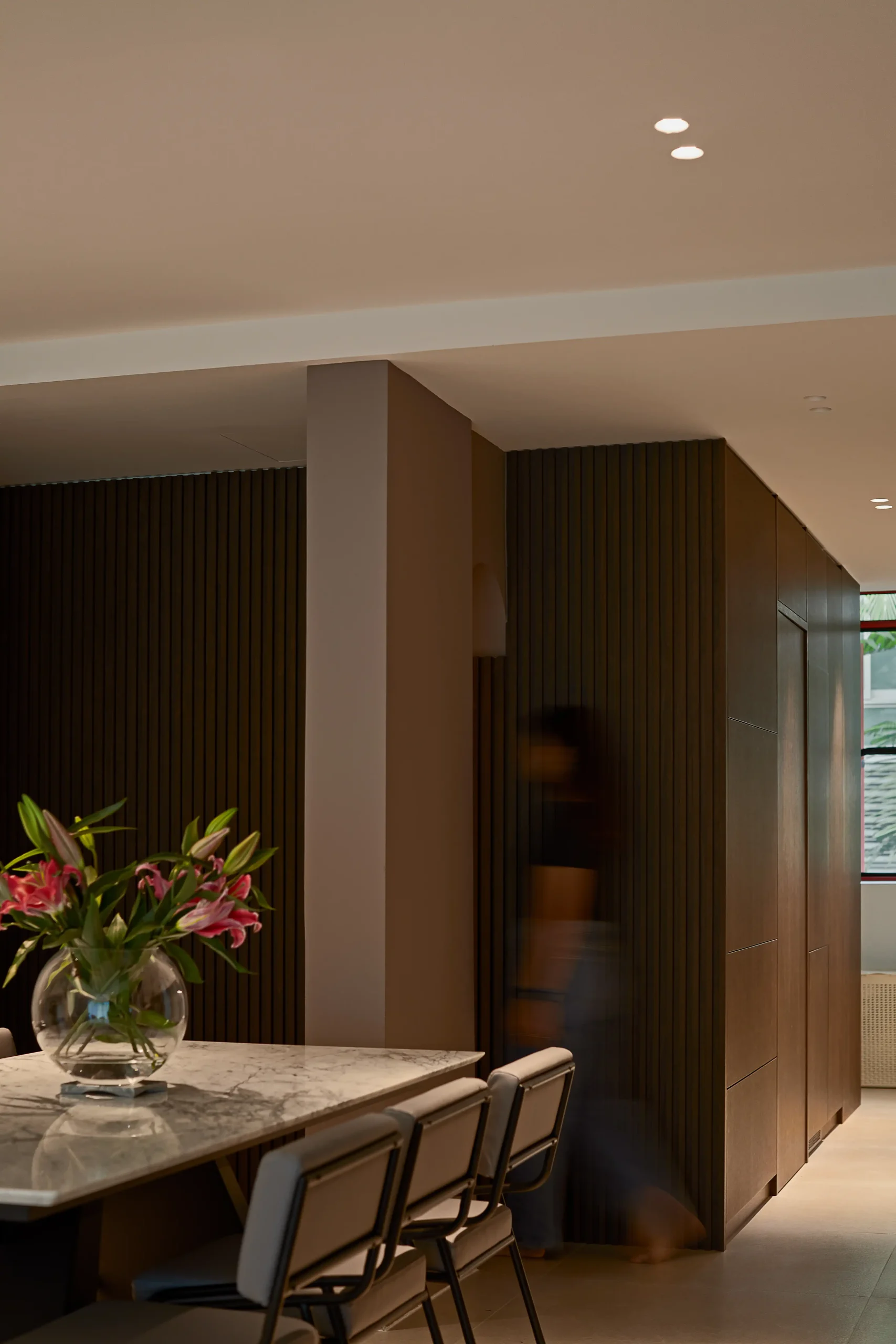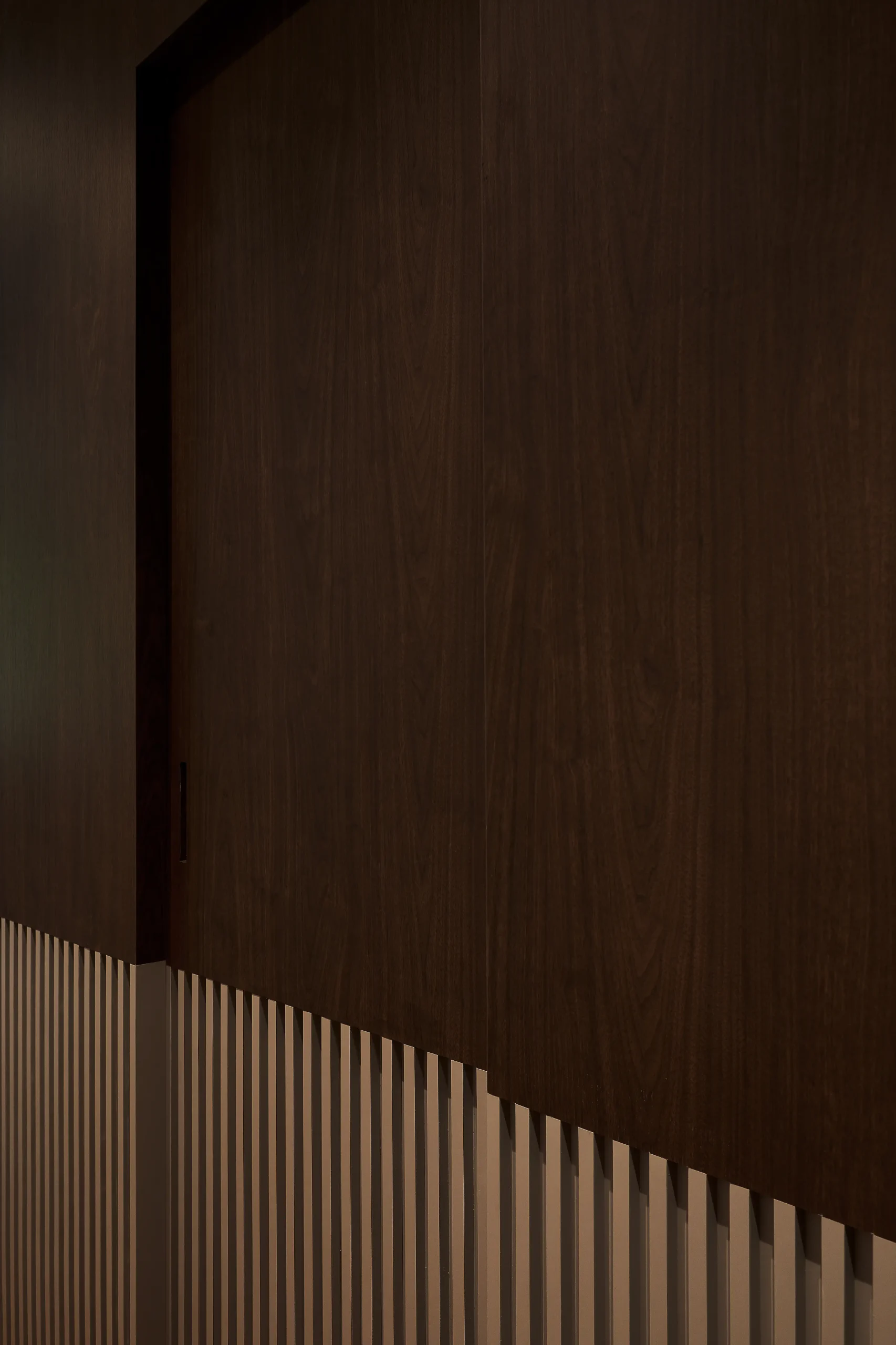 It is a space for a rhythmic heartbeat of walnut fluting, masking everything from entries to private zones within a singular facade. Imagine a home where mess simply has no place to exist.